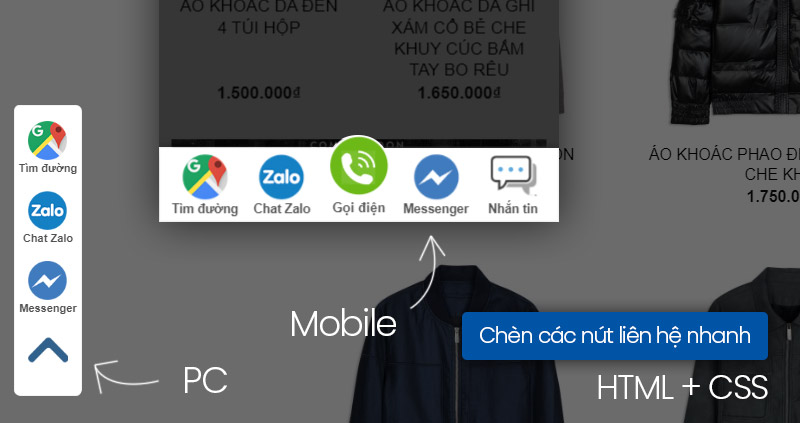 Code tạo nút liên hệ nhanh bằng HTML và CSS cho website