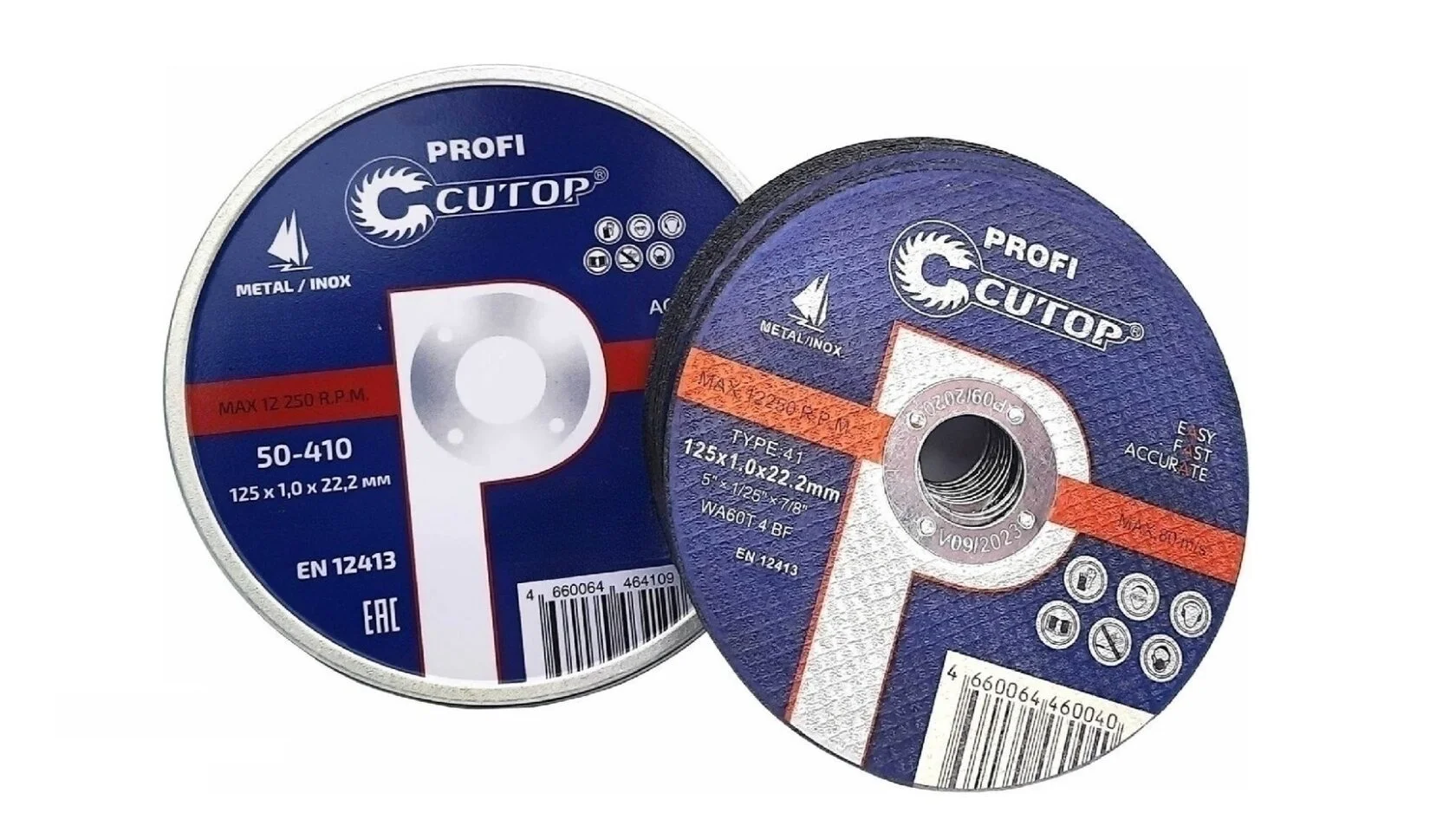 Set of professional cutting discs for metal and stainless steel, 10 pieces. Metal box, waterproof. Discs are produced on the basis of single-crystal electrocorundum, which improves efficiency and allows you to increase the number of cuts several times. For angle grinders. Rim diameter 22.2 mm.