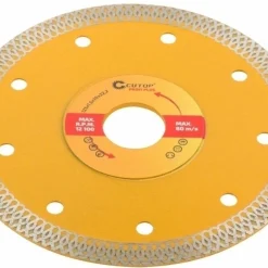 It is used on angle grinders and stationary tile cutters for cutting with cooling porcelain stoneware, hard and soft ceramic tiles, artificial and natural stone. The cutting edge ensures high cutting speed and neat, precise cutting of tiles without cracks and chips. The high concentration of fine diamonds ensures the perfect cleanliness of the resulting edges.