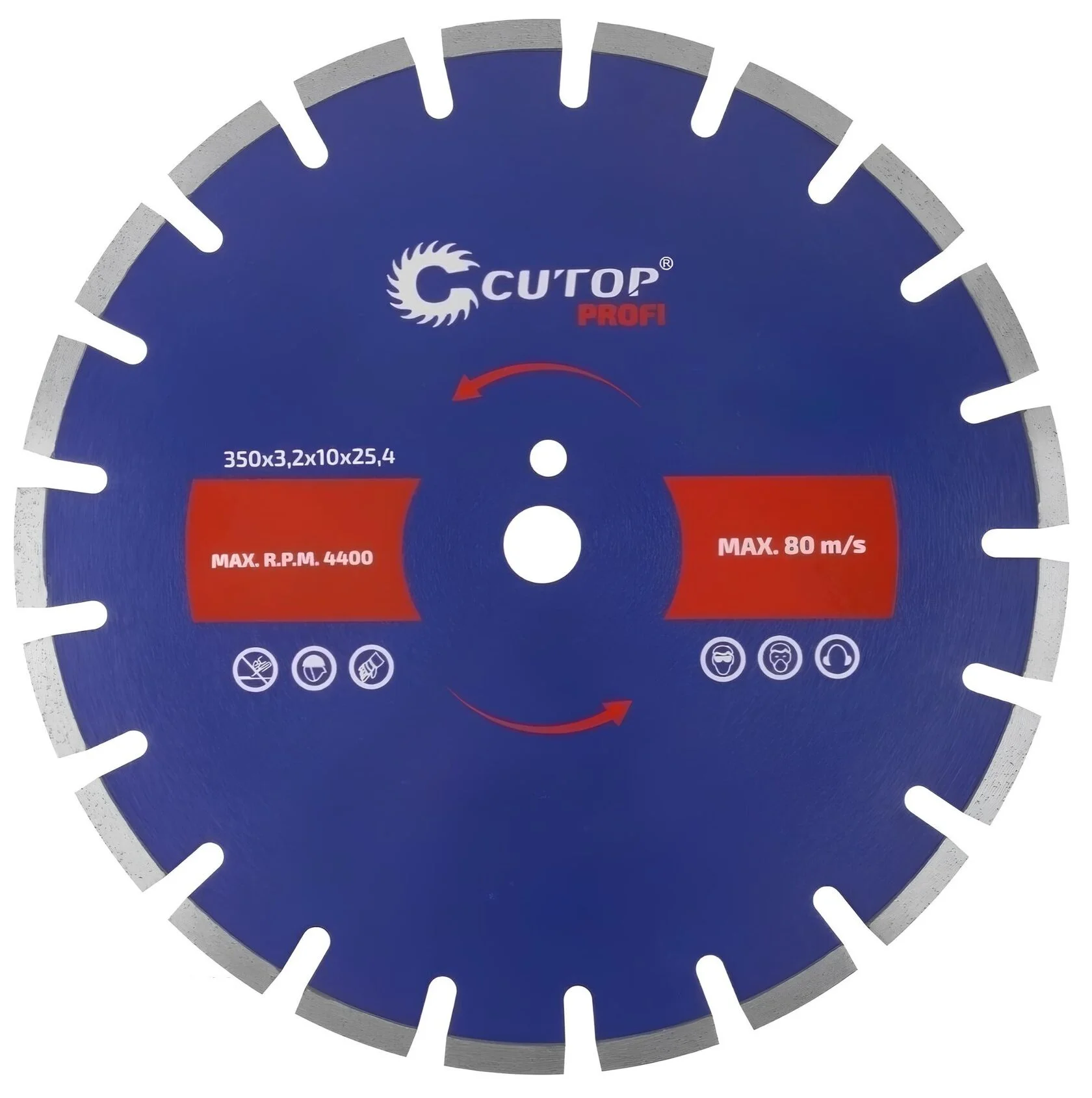 The Cutop Profi industrial diamond blade is designed for dry and wet cutting of asphalt, asphalt concrete and other highly abrasive materials. It is used in joint cutters and petrol cutters. Thanks to wide diamond layer, provides fast cutting and long service life. The cutting edge with a height of 10 mm consists of segments, made using high quality technical diamonds increased strength, welded by soldering to the disc body.