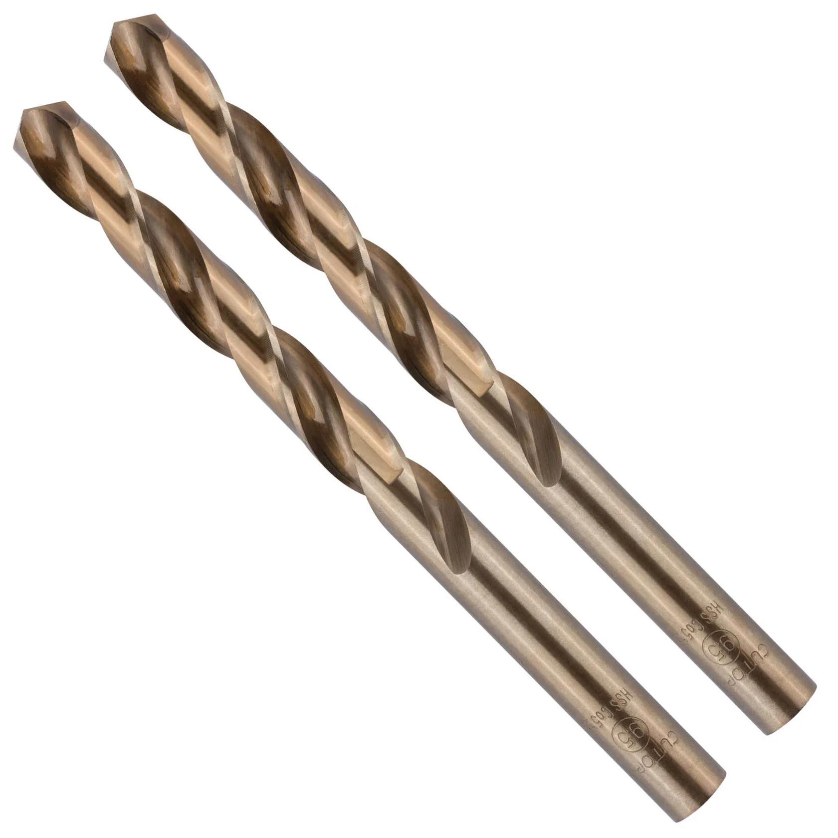 Sharpening angle 135°. Designed for drilling holes in carbon and alloy steels, gray and ductile irons, non-ferrous metals and plastics. Material: HSS steel with 5% cobalt addition (R6M5K5).