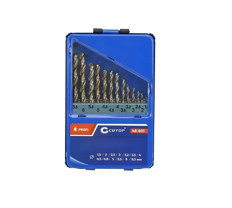 Metal drill Cutop Profi with 5% cobalt for professional use. Accuracy class A1. Cylindrical shank. Sharpening angle 135 degrees. Designed for drilling holes in carbon and alloy steels, gray and malleable cast irons, non-ferrous metals and plastics. Material: HSS steel with 5% cobalt (P6M5K5).